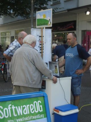 Heute, am weltweiten Software Freedom Day hat die Community FreieSoftwareOG wieder den traditionellen Informations-Stand vor der Firma Fun-Computer angeboten.